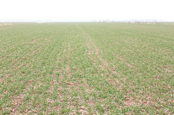 2009年小麥秋種期和苗期的氣候因素不利于小麥正常生長,一是播種期干旱加大了小麥適時出苗難度、二是強冷空氣影響早小麥越冬前利用有效積溫不夠、生長不足、小麥葉齡較常年減少1.5片左右。面對秋種期間不利天氣,東風湖農場緊急動員職工開展抗旱保苗、促苗行動,至11月2日全場二次促苗噴灌工作結束、噴灌后充足的土壤墑情為小麥越冬前生長創造了良好的水肥條件。據近日田間調查,全場90%地塊苗情已達到5葉一心。田間群體在65萬/畝左右。結合苗情還應繼續加強麥田冬春期管理。一、低洼田的降水降濕以護根透氣,二、因苗適量追施返青肥以促孽成穗,三、足施拔節肥以增加粒數和粒重,同時加強測報工作,及時防治田間病蟲草害,通過加強管理力爭今年午季小麥實現持續豐產豐收。
