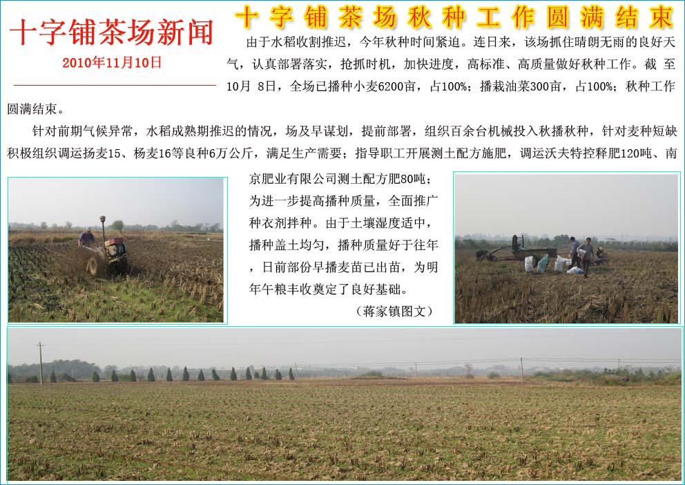 十字鋪茶場秋種工作圓滿結(jié)束