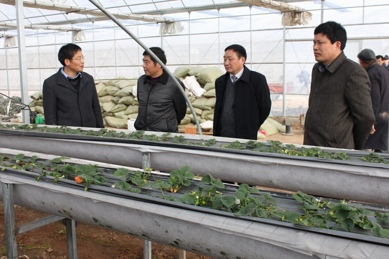 驗收組一行通過深入實地察看和聽取工作匯報,對農場千畝蔬菜基地規劃建設和草莓、蒿子長勢深表滿意,并對下步發展提出了寶貴建議。
