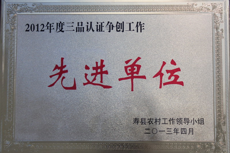 近日,壽縣農(nóng)村工作領(lǐng)導(dǎo)小組授予正陽關(guān)農(nóng)場“2012年度三品認(rèn)證爭創(chuàng)工作先進(jìn)單位稱號。