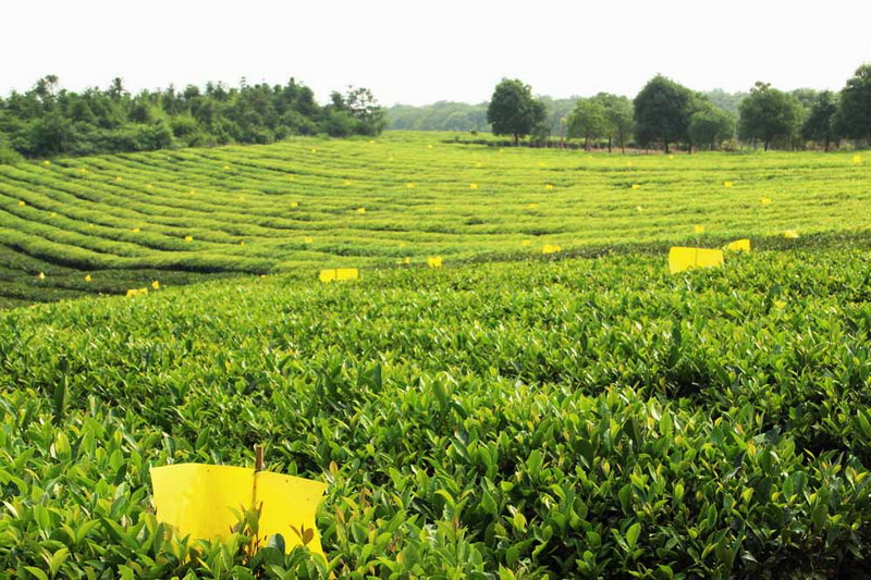十字鋪茶場:黃板誘殺害蟲效果好