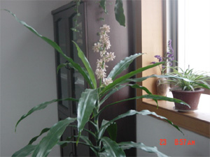 從網上一查,原來:巴西木,原產國巴西,是我國 引入栽培的一種著名橡膠樹,喜暖熱氣候,適合在 濕潤的沃土里生長,不易開花,在北方地區開花尤 其罕見。