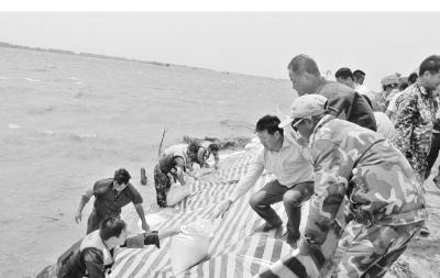 47歲的二場職工郭玉春,從管區主任那里得知場里要組織人員去一場防汛搶險,老郭來不及和家人打招呼就站到了隊伍中,第二天又早早地來到集結地點,他們當中有的放下需要照顧的子女,有的放下正在營業的飯店,有的放下家中需要照看的病弱老人,無怨無悔也無所求地奔赴搶險一線,堤壩上從早上7點一直奮戰到晚上6點,湖水泡爛了腳,胳膊曬塌了皮,腿上被蚊蟲叮出了包,沒有一個人叫苦喊屈。