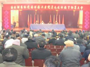 根據當地黨委的安排,潘村湖農場參加中共明光市 委組織的第一批保持共產黨員先進性教育活動。時 間從即日起到5月底基本結束。2月25日上午,潘村 湖農場黨委召開了由場屬19個黨支部近400名黨員參 加的全場保持共產黨員先進性教育活動動員大會。 場黨委書記韓大鳴代表場黨委作了動員講話。場黨 委其他同志分別就這次活動的實施,要求作了部 署。會議還傳達了省農墾集團公司黨委書記丁俊先 和中共明光市委負責同志的有關講話精神。圖為動 員大會場景。(楊登宏攝)
