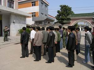 明光市人武部日前發(fā)布命令,要求潘村湖農(nóng)場(chǎng)基干民 兵連于4月15日下午3點(diǎn)到農(nóng)場(chǎng)場(chǎng)部快速集結(jié)待命.接 到命令后,場(chǎng)武裝部迅速將命令下達(dá)到各排、班。當(dāng) 天下午3點(diǎn),來(lái)自場(chǎng)屬各單位的67名基干民兵指戰(zhàn)員 奉命集結(jié)到位,到位率達(dá)96%%,受到前來(lái)點(diǎn)驗(yàn)的明光 市人武部領(lǐng)導(dǎo)的稱贊。圖為農(nóng)場(chǎng)民兵連正在接受點(diǎn) 驗(yàn)的情景。(楊登宏攝)