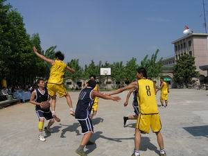 為豐富農場職工的節日文化生活,潘村湖農場于4月 28日至29日舉辦了第十六屆職工籃球賽。全場有12 個單位單獨或聯合組織了9支球隊參加比賽。正在農 場調研的集團公司副總經理李卓民興致勃勃地為本 屆比賽開球。經過2天共12場激烈比賽,最后一分場 獲得冠軍,糧油公司和建筑公司聯隊名列第二,二 分場獲得第三名。圖為精彩激烈的比賽瞬間。(楊 登宏攝)