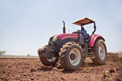 津巴布韋發(fā)展農業(yè)的自然條件較好,但農業(yè)生產方式落后,技術和管理也十分欠缺,不得不依靠進口糧食和援助解決吃飯問題。津方邀請有實力的中國農業(yè)企業(yè)赴津開展農業(yè)合作。津方出土地,中方出資金、技術和管理,雙方的務實合作,在土地中結出果實。圖為在津巴布韋奇諾伊的溫亞尼農場上,皖津公司一名員工開著中國產“東方紅”拖拉機犁地。 (新華社記者許林貴攝)