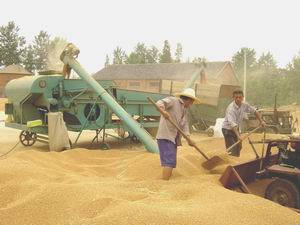 在今年午收工作中,大壙圩農場職工賣糧普遍感到 既輕松又省事,他們從內心里感激農場領導為他們 又做了一件大好事。+以往每年一提到賣糧,家庭農 場職工總是憂心忡忡,一愁雇工難,花費大。二愁 工作量大。賣糧時,先是人工打包、上車,交售時 還要扛包、卸包,其中有很多是重復勞動,費時費 力。為了改變這種現狀,農場領導想職工之所想, 經多方考察,決定投資進行技術改造。農場投資5萬 多元,給8個農業分場共配置了8臺清糧機和16臺糧 食升運機。這樣一來,家庭農場職工在場頭只需做 一些簡單的輔助勞動,就可以將糧食輕松地輸送到 帶有自卸裝置的運輸車上,運往交售地點,過完地 磅,即完成交售任務,免去以往裝包、縫包、扛 包、卸包等繁瑣的勞動。交售的糧食經過清選,既 可以保證質量,提高糧食等級,又可以清除雜質, 減少運輸費用。通過抓場頭技改,使職工賣糧不僅 省工省力,而且大大節約了成本。據測算,僅此一 項午季全場可節本15萬多元。(楊朝幸)