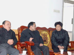 1月13日,省農(nóng)林水工會(huì)夏副主席及吳、楊兩位主 任一行來(lái)到華陽(yáng)河農(nóng)場(chǎng),對(duì)困難職工進(jìn)行慰問(wèn),表 達(dá)了上級(jí)工會(huì)組織對(duì)農(nóng)場(chǎng)職工的關(guān)心和愛(ài)護(hù)。夏主 席一行還不辭辛勞,到華陽(yáng)河農(nóng)場(chǎng)一場(chǎng)看望了特困 職工。(圖中左一為夏主席、左二為農(nóng)場(chǎng)工會(huì)主席 汪登松、右一為吳主任)