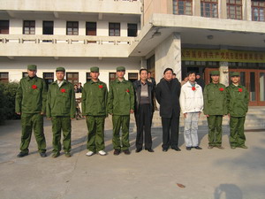 在9日下午的歡送會上,韓大鳴場長向新入伍青年 提出了殷切的期望。韓場長指出:經過各級組織層 層挑選,我場7名青年即將走進軍營,成為光榮的 中國人民解放軍戰士,場黨委對此表示熱烈的祝 賀。韓場長代表場黨委希望新參軍的同志在部隊安 心服役,苦練保家衛國本領,為軍旗添采,為家鄉 父老增光。各位家長更要發揮軍屬在農場改革和發 展中的模范帶動作用,為農場各項建設做出應有的 貢獻。7名新戰士在會上表示:一定不辜負領導和 家人的期望,在部隊安心服役,服從命令聽指揮, 全面提升自身政治和業務素質,樹立農場青年的良 好形象,爭取早日立功受獎,為農場爭光,為親人 爭光。場武裝部和新兵所在單位的領導以及軍屬代 表也在歡送會上作了發言。圖為會議結束后,韓大 鳴場長(右四)興致勃勃地與新戰士合影留念。 (楊登宏)