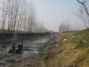 日前,農(nóng)場正抓住有利時(shí)機(jī),因地制宜,緊鑼密 鼓,扎實(shí)開展冬修水利工程建設(shè)。農(nóng)場統(tǒng)一安排了 6臺(tái)吸漿機(jī)加緊對大溝清於;剛剛結(jié)束秋收秋種任 務(wù)的農(nóng)業(yè)單位職工積極響應(yīng)農(nóng)場號(hào)召,不等不靠, 紛紛投入到各自條田溝清於勞動(dòng)當(dāng)中,掀起了水利 冬修的熱潮.(圖為吸漿機(jī)清於作業(yè)現(xiàn)場) (夏慶 芳)