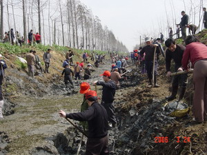 進行大溝清於是我場加強溝渠配套整治的重點工程 之一。去年冬季全場已完成了5200米大溝清淤任 務,剩余的2000多米主干溝清於任務計劃在今年完 成。農場精心安排組織這次聲勢較大的集體義務勞 動,一方面為了搶抓春季興修水利的黃金季節,促 進全場干溝清於工程任務的全面完成;另一方面也 是為了大造聲勢,在全場上下營造興修水利的良好 氛圍,教育引導職工群眾以實際行動認認真真、扎 扎實實把農場布置的各項水利興修任務完成好,努 力為農業發展夯實基礎。(夏慶芳)